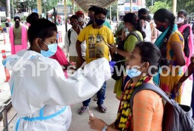 Photo Caption : Swab tests to passengers arriving at Bengaluru City Railway Station, after the Karnataka government eased restrictions for travel amid ongoing Coronavirus pandemic, in Bengaluru on Thursday 8th July 2021