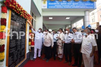 DCM Laxman Savadi with MLA Satish Reddy and others inaugurated the Regional Transport Office (RTO) Bengaluru Central, in Bengaluru on Thursday 8th July 2021