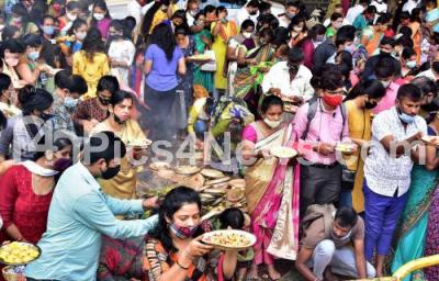 Photo Caption : Devotees performing Ashada Amavasya Pooja at Banashankari Temple, in Bengaluru on Friday 9th July 2021