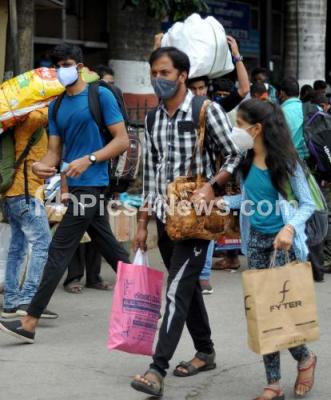 Passengers arrive at the Bengaluru City Railway Station from their native, after the Karnataka government eased restrictions for travel amid ongoing Coronavirus pandemic, in Bengaluru on Friday 9th July 2021