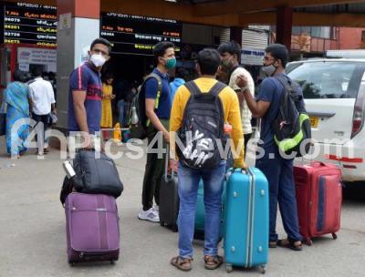 Photo Caption : Passengers arrive at the Bengaluru City Railway Station from their native, after the Karnataka government eased restrictions for travel amid ongoing Coronavirus pandemic, in Bengaluru on Monday 12th July 2021