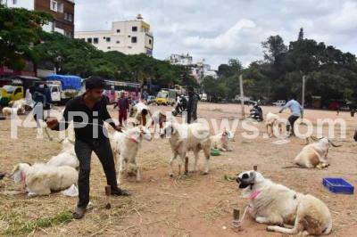 Sheep for sale at Chamarajpet Eidgah Ground, ahead of bakrid festival, in Bengaluru on Monday 12th July 2021