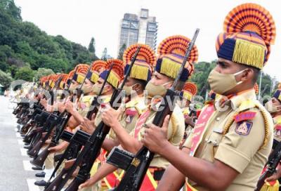 Photo Caption : KSRP personnel during CM program at Vidhana Soudha, in Bengaluru on Tuesday 13th July 2021
