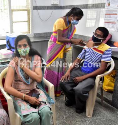 Photo Caption : A health worker administers a dose of the COVID-19 vaccine to a beneficiary at Dasappa Hospital during COVID-19 vaccination drive, in Bengaluru on Wednesday 14th July 2021
