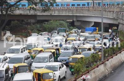 Photo Caption : Heavy traffic jam at Okalipuram junction, in Bengaluru on Wednesday 14th July 2021