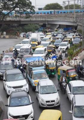 Photo Caption : Heavy traffic jam at Okalipuram junction, in Bengaluru on Wednesday 14th July 2021