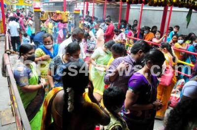 Devotees performing First Ashada Friday Pooja at Annamma Devi Temple, in Bengaluru on Friday 16th July 2021