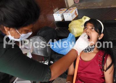 Photo Caption : A health worker collects swab samples from a Kid for COVID-19 test at Majestic Bus stand, during COVID-induced lockdown , in Bengaluru on Friday 16th July 2021