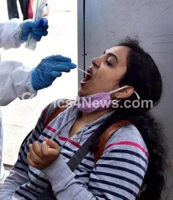 Swab tests to passengers arriving at Bengaluru City Railway Station, after the Karnataka government eased restrictions for travel amid ongoing Coronavirus pandemic, in Bengaluru on Saturday 17th July 2021