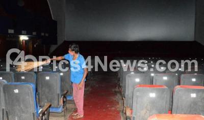 Event Description : A worker cleaning a cinema hall ahead of the reopening, after the Karnataka government eased restrictions amid ongoing Coronavirus pandemic, in Bangalore on Sunday 18th July 2021