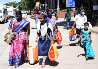 Photo Caption : Passengers arrive at the Bengaluru City Railway Station from their native, after the Karnataka government eased restrictions for travel amid ongoing Coronavirus pandemic, in Bengaluru on Monday 19th July 2021