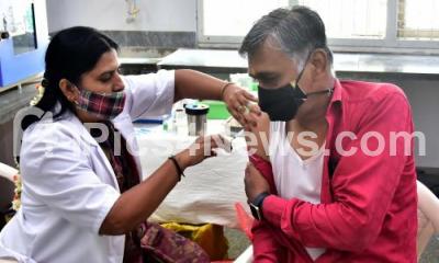 Photo Caption : A health worker administers a dose of the COVID-19 vaccine to a beneficiary at Dasappa Hospital during COVID-19 vaccination drive, in Bengaluru on Tuesday 20th July 2021