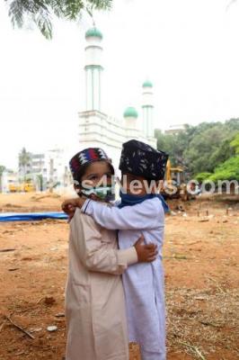 Photo Caption : Muslims greeting each other during the prayers on the occasion of Bakrid Festival, in Bengaluru on Wednesday 21st July 2021