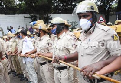 Photo Caption : Police personnel try stop the members of NSUI gathered outside Vidhana Soudha, during a protest march against the central government over an alleged surveillance operation using the Pegasus spyware, in Bengaluru on Thursday 22nd July 2021