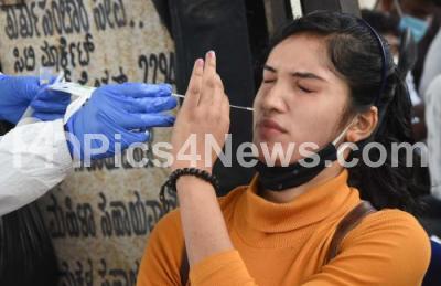 Photo Caption : Swab tests to passengers arriving at the Bengaluru City Railway Station from their native, after the Karnataka government eased restrictions for travel amid ongoing Coronavirus pandemic, in Bengaluru on Friday 23rd July 2021