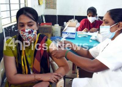 Photo Caption : A health worker administers a dose of the COVID-19 vaccine to a beneficiary at Malleshwaram during COVID-19 vaccination drive, in Bengaluru on Saturday 24th July 2021