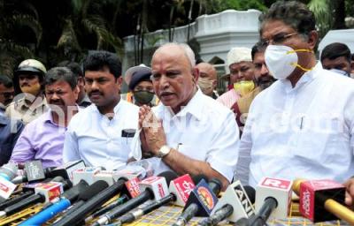 Karnataka CM BS Yediyurappa addressing media after submitting his regnation to the gorvernor at Raj Bhavan, in Bengaluru on Monday 26th July 2021