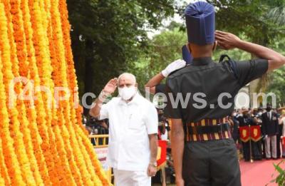 Karnataka CM BS Yediyurappa pays tribute during the Kargil Vijay Diwas programme at National Military Memorial, in Bengaluru on Monday 26th July 2021