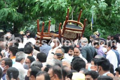 Photo Caption : Workers carry chairs during the oath taking ceremony of new Karnataka Chief Minister Basavaraj Bommai at Raj Bhavan, in Bengaluru on Wednesday 28th July 2021
