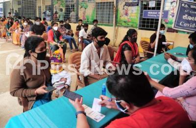 People wait for their turn to get covid-19 vaccine at KC General Hospital during COVID-19 vaccination drive, in Bengaluru on Thursday 29th July 2021