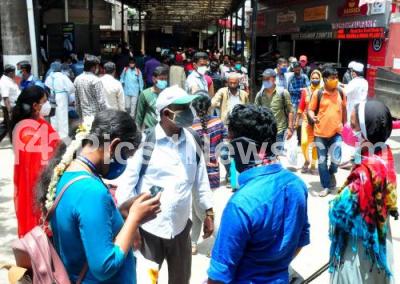 Photo Caption : Passengers arrive at the Bengaluru City Railway Station from their native, after the Karnataka government eased restrictions for travel amid ongoing Coronavirus pandemic, in Bengaluru on Friday 30th July 2021