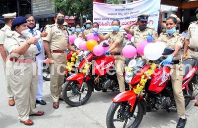 Photo Caption : Bhaskar Rao, ADGP, Railways launching the Railway division Women Safety Bike at City Railway Station, in Bengaluru on Friday 30th July 2021