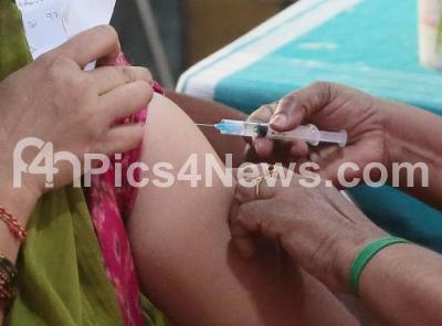 Photo Caption : A health worker administers a dose of the COVID-19 vaccine to a beneficiary at Malleshwaram Vaccination Centre during COVID-19 vaccination drive, in Bengaluru on Monday 2nd August 2021