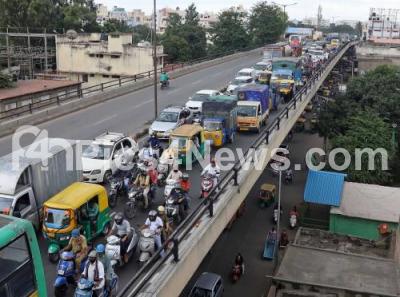Photo Caption : Traffic jam due to Good Shed Road being closed for White Topping of the road by BBMP, in Bengaluru on Thursday 5th August 2021