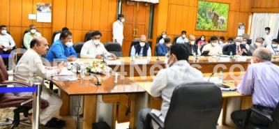 Photo Caption : CM Basavaraj Bommai held a high level committee meeting with Ministers, Officials at Krishna, in Bengaluru on Friday 6th August 2021