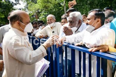 Photo Caption : CM Basavaraj Bommai receiving public petitions at his residence, in Bengaluru on Saturday 7th August 2021
