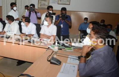 Photo Caption : Minister R Ashok with Gaurav Guptha, BBMP Commissioner and others seen at a meeting at BBMP Office, in Bengaluru on Monday 9th August 2021