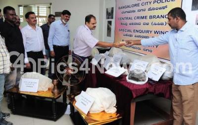 Bengaluru Central Crime Branch (CCB) police seized a whopping 80 kg banned marine substance Ambergris (endangered Sperm whale vomit or faecal matter) worth about Rs 80 crore from five persons, being displayed during a press conference, in Bengaluru on Tuesday 10th August 2021