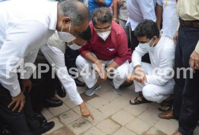 Photo Caption : Minister R Ashok with MP PC Mohan, MLA Rizwan Arshad and BBMP Commissioner Gaurav Gupta inspect the Commercial Street and other development works, in Bengaluru on Friday 13th August 2021