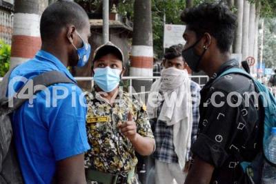 Photo Caption : BBMP Marshals impose fine on public who were not wearing masks amid coronavirus pandemic, in Bengaluru on Saturday 14th August 2021