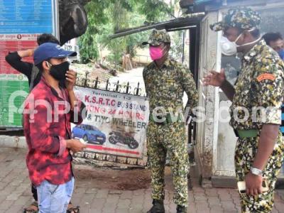 Photo Caption : BBMP Marshals impose fine on public who were not wearing masks amid coronavirus pandemic, in Bengaluru on Monday 16th August 2021