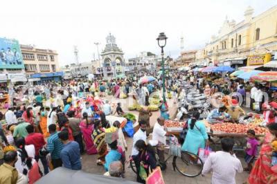 Photo Caption : People shopping for Varamahalakshmi festival at a Market, in Mysuru on Thursday 19th August 2021