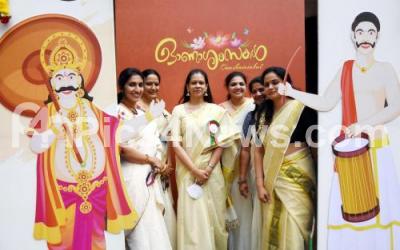 Photo Caption : Malayalis at Pookalam, Flower Rangoli decorations on the occasion of Onam Festival at East Cultural Association, in Bengaluru on Saturday 21st August 2021