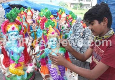 Photo Caption : An artist giving final touches to the Sri Krishna idols ahead of the Sri Krishna Janmashtami, in Bengaluru on Monday 23rd August 2021