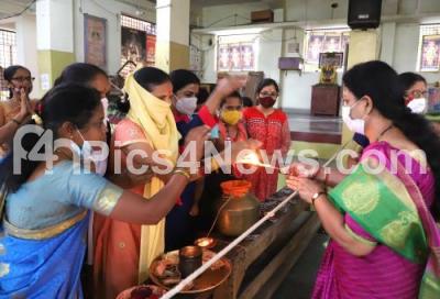 Devotees performing puja at Sri Raghavendra swamy temple on the occasion of Sri Raghavendra swamy Aradhana, in Bengaluru on Wednesday 25th August 2021