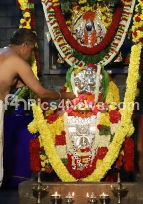 Photo Caption : Devotees performing puja at Sri Raghavendra swamy temple on the occasion of Sri Raghavendra swamy Aradhana, in Bengaluru on Wednesday 25th August 2021