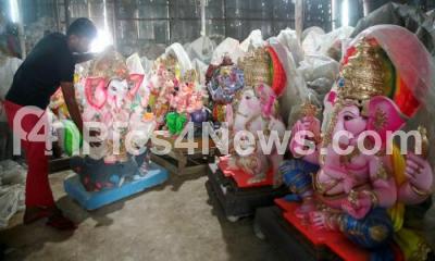 Photo Caption : Ganesha idols being prepared for sale ahead of Ganesha Chaturthi festival at RV Road, in Bengaluru on Wednesday 25th August 2021