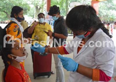 Photo Caption : Swab tests to passengers arriving at the Bengaluru City Railway Station, after the Karnataka government eased restrictions for travel amid ongoing Coronavirus pandemic, in Bengaluru on Saturday 28th August 2021