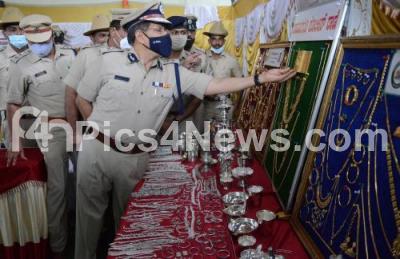 Photo Caption : Kamal Pant, Bengaluru City Police Commissioner inspecting the recovered valuables during the property parade and press conference, in Bengaluru on Monday 30th August 2021