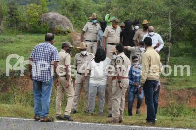 Photo Caption : The investigation team and the police took the accused rapists to the scene of crime to conduct spot investigation in the Mysuru gangrape case, in Mysuru on Monday 30th August 2021