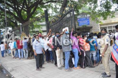 Photo Caption : People wait for their turn to get covid-19 vaccine at Patel M Kempaiah Girijamma Dispensary JC Road, during COVID-19 vaccination drive, in Bengaluru on Tuesday 31st August 2021