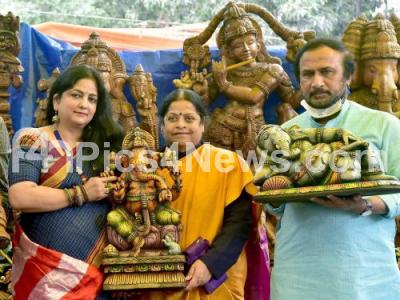 Photo Caption : Shobha Ramesh, Interior Designer, Artist Jayanthi Rathan, BL Shankar, President, Chitrakala Parishat, seen during inauguration of "The Souq" Art, Craft, Handlooms exhibition at Chitrakala Parishat, in Bengaluru on Friday 3rd September 2021