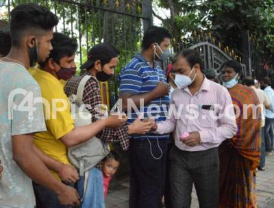 People collect tokens and wait for their turn to get covid-19 vaccine at Patel M Kempaiah Girijamma Dispensary JC Road, during COVID-19 vaccination drive, in Bengaluru on Sunday 5th September 2021