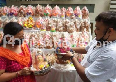 People buying Gowri, Ganesha idols at Malleshwaram ahead of Gowri Ganesha festival, in Bengaluru on Tuesday 7th September 2021