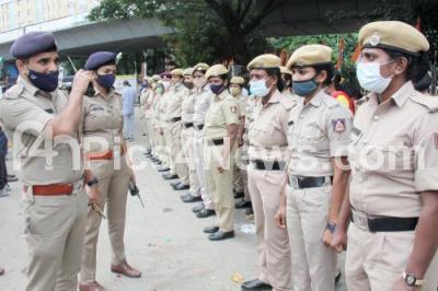 Photo Caption : Police personnel security during Congress leaders protest against Central government for LPG cylinder price hike, in Bengaluru on Wednesday 8th September 2021