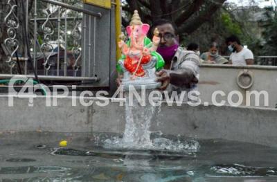 Photo Caption : Ganesha Idols Immersion at designated BBMP Tanks, in Bengaluru on Saturday 11th September 2021